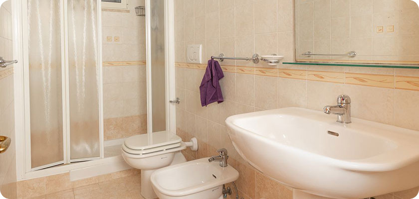 Bagno con box doccia e tutti i servizi, completato da biancheria e linea cortesia di lusso Prija, dove potrete rilassarvi e rigenerarvi dopo una giornata di mare nelle acqua blu dell'ariana beach.