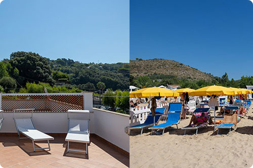 Gli appartamenti sono posti tra il primo piano, il piano terra e una depandance, gliaccessi sono vicino alla spiaggia attrezzata, che dista a 10 metri, con la possibilità di avere 1 ombrellone con lettini.