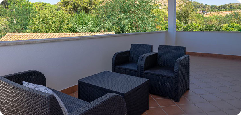 L'appartamento è al secondo livello della porzione della Villa, direttamente sulla spiaggia attrezzata, che dista a 10 metri, con la possibilità di avere 1 ombrellone con lettini, oppure potete rilassarvi sullo splendido solarium con vista mare.