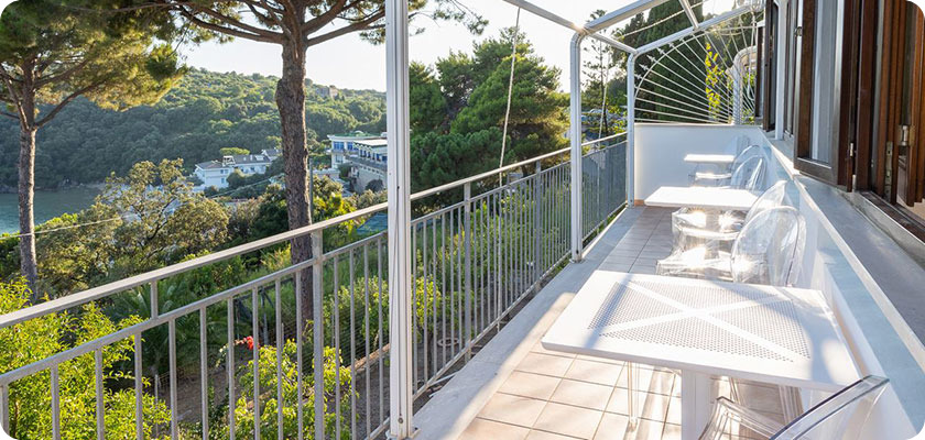 L'appartamento dispone di parcheggio privato e spiaggia inclusi nel soggiorno, ma anche di un solarium panoramico attrezzato, vista mare per piacevoli serate o godere di splendidi tramonti.